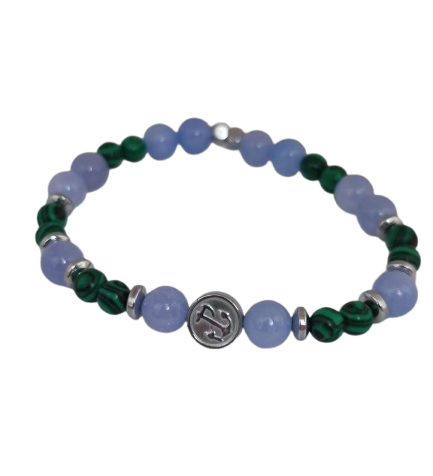 Hematite Plate with Anchor, Lilac Agate, Hematite Rondelets, Malachite