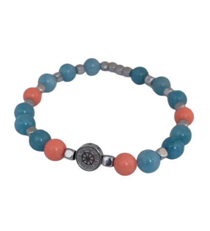 Hematite Plate with Anchor, Pink Coral Plate, Tiffany Agate, Hematite Cubes