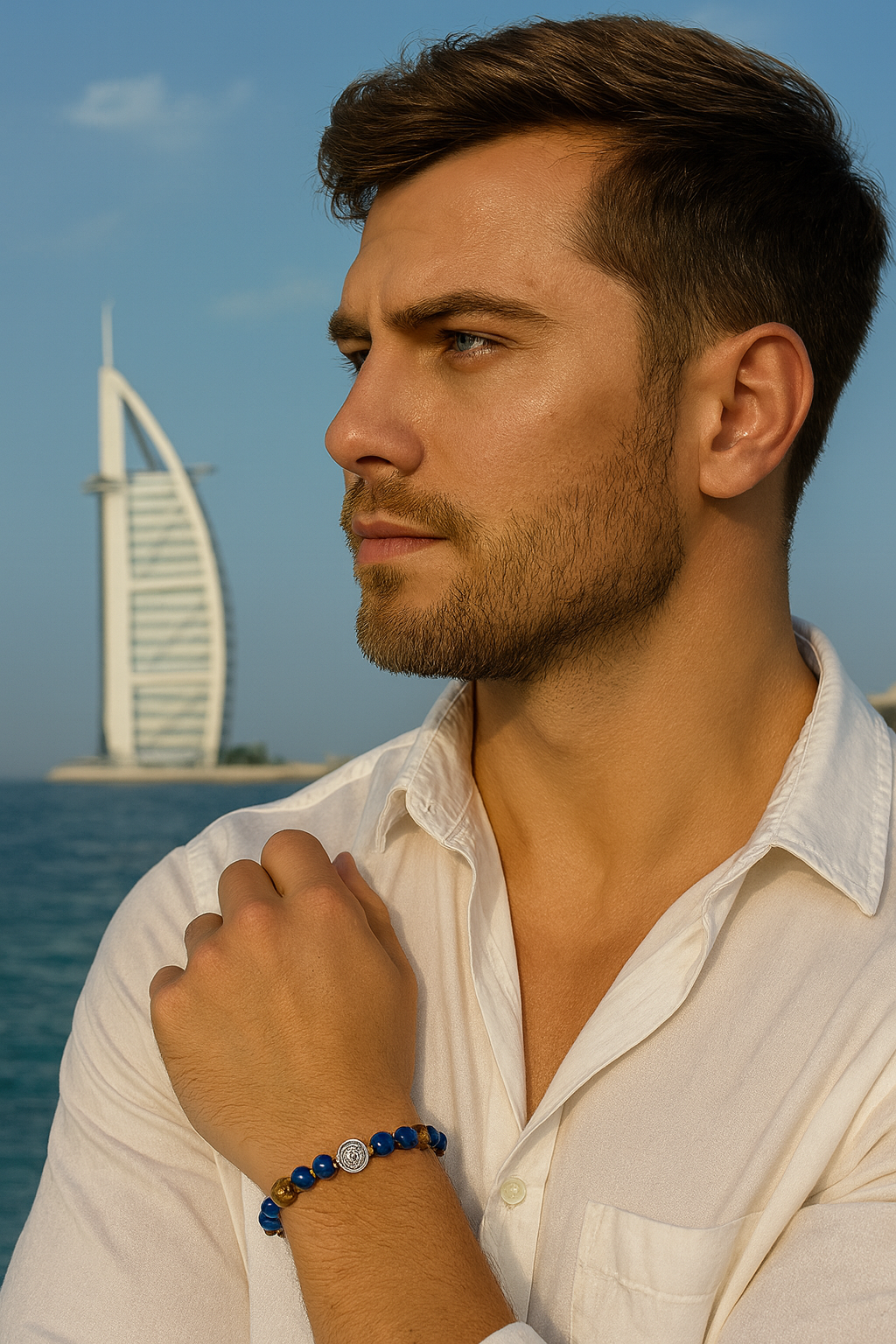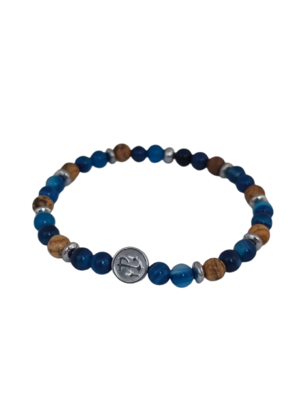 Hematite Plate with Anchor, Striped Blue Agate, Paesina Stone, Hematite Cubes