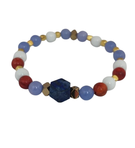 Lapis Stone, Lilac Agate, Bamboo Coral Paste, White Agate, Gold-Plated Hematite Cubes