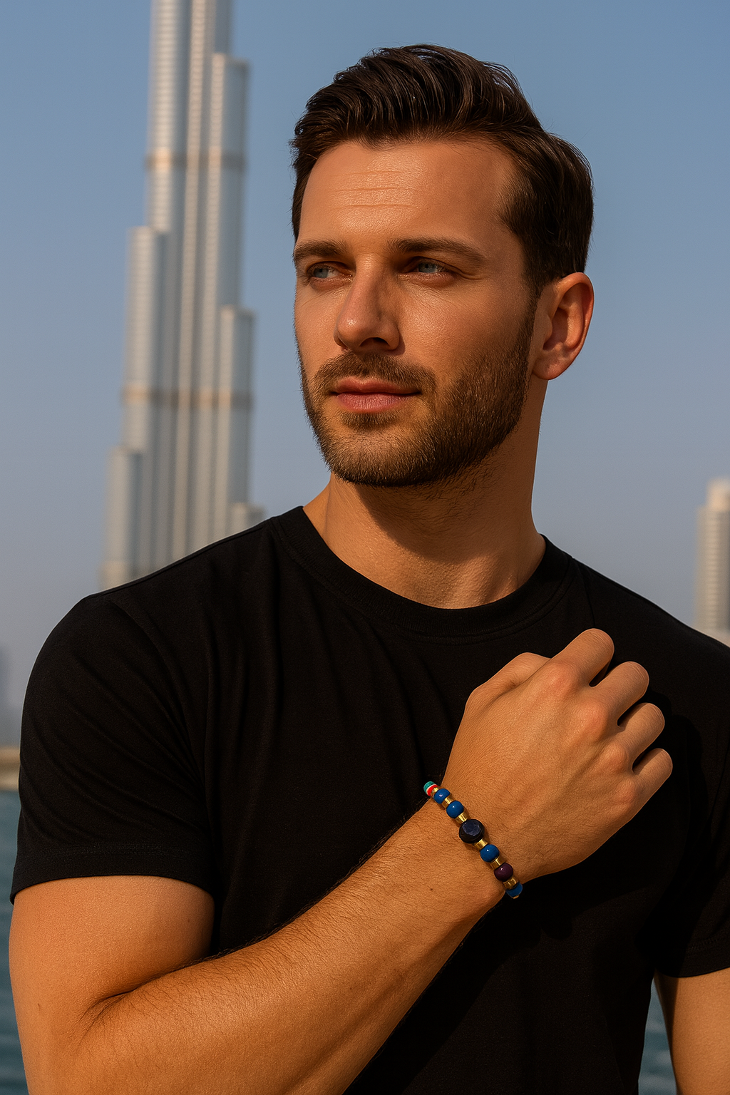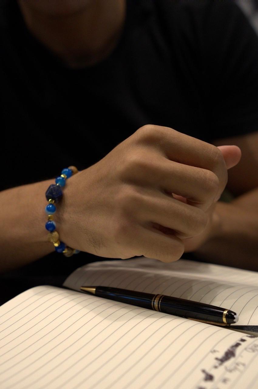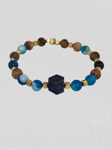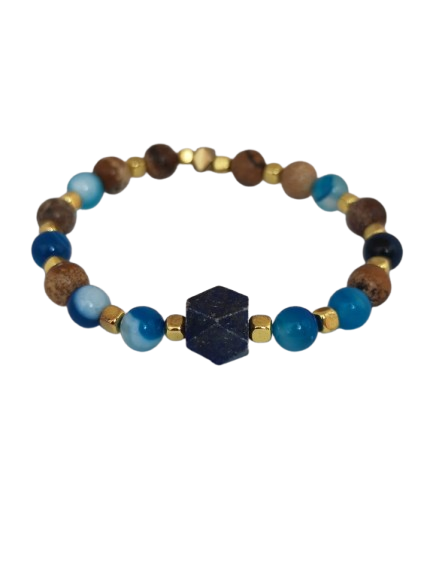 Lapis Stone, Striped Blue Agate, Paesina Stone, Gold-Plated Hematite