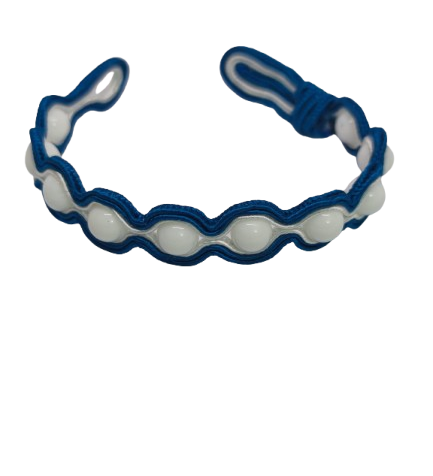 White Agate wrapped in blue embroidery