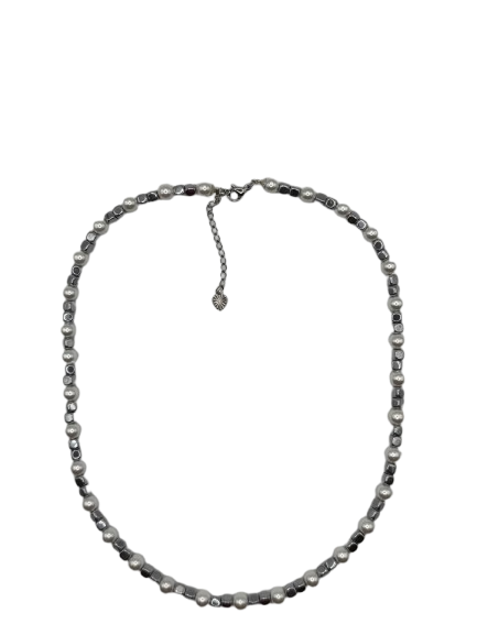 Majorca Pearls · Silver Hematite Cubes · Stainless-Steel Lobster Clasp