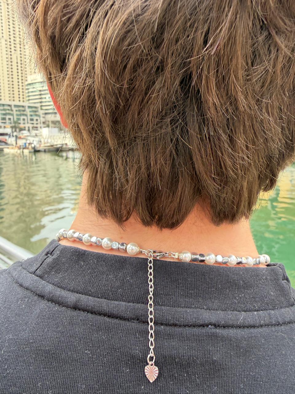Majorca pearls · Silver hematite cubes · Adjustable stainless-steel lobster clasp