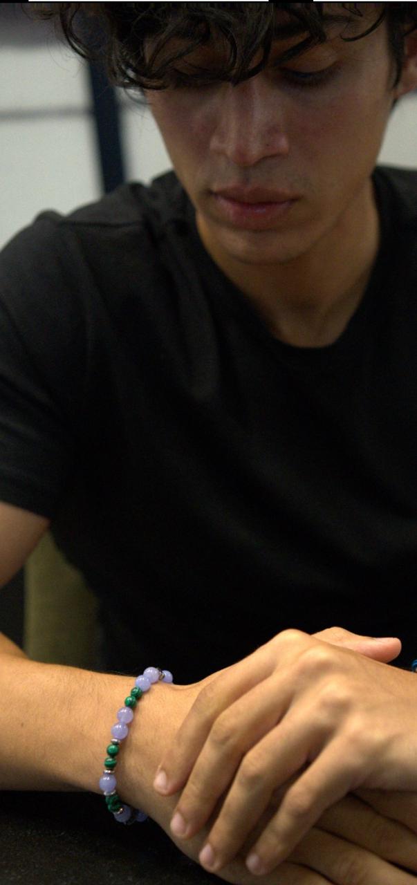 Hematite Plate with Anchor, Lilac Agate, Hematite Rondelets, Malachite