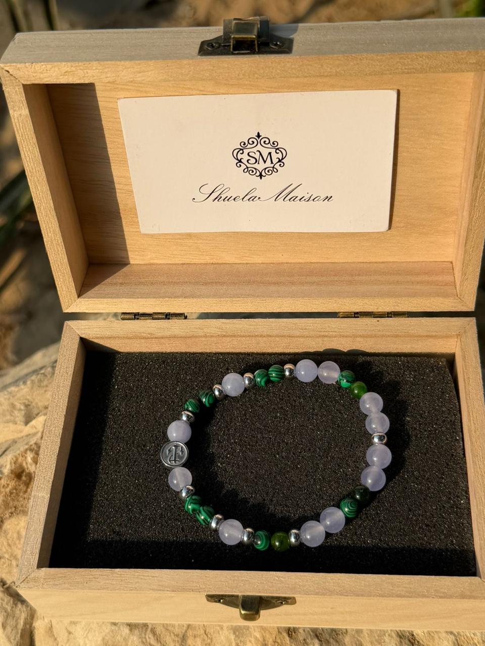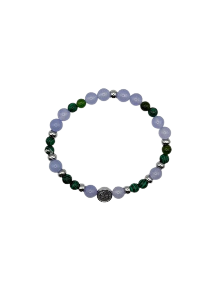 Handmade in Italy, Sir Edwin – Anchor & Malachite Contrast pairs the polished strength of a hematite anchor plate with the refined, soft-violet tones of lilac agate. Malachite adds a striking deep-green contrast, while hematite rondelets bring a sleek metallic rhythm that sharpens the bracelet’s structure and silhouette.