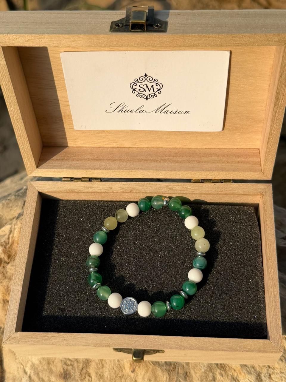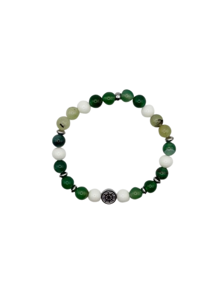 Handmade in Italy, Sir Edwin – Anchor & Green Agate Duo blends the polished strength of a hematite anchor plate with the clean luminosity of white agate and the fresh, vibrant tones of green agate. Hematite cubes give the bracelet its geometric structure and a modern metallic edge.