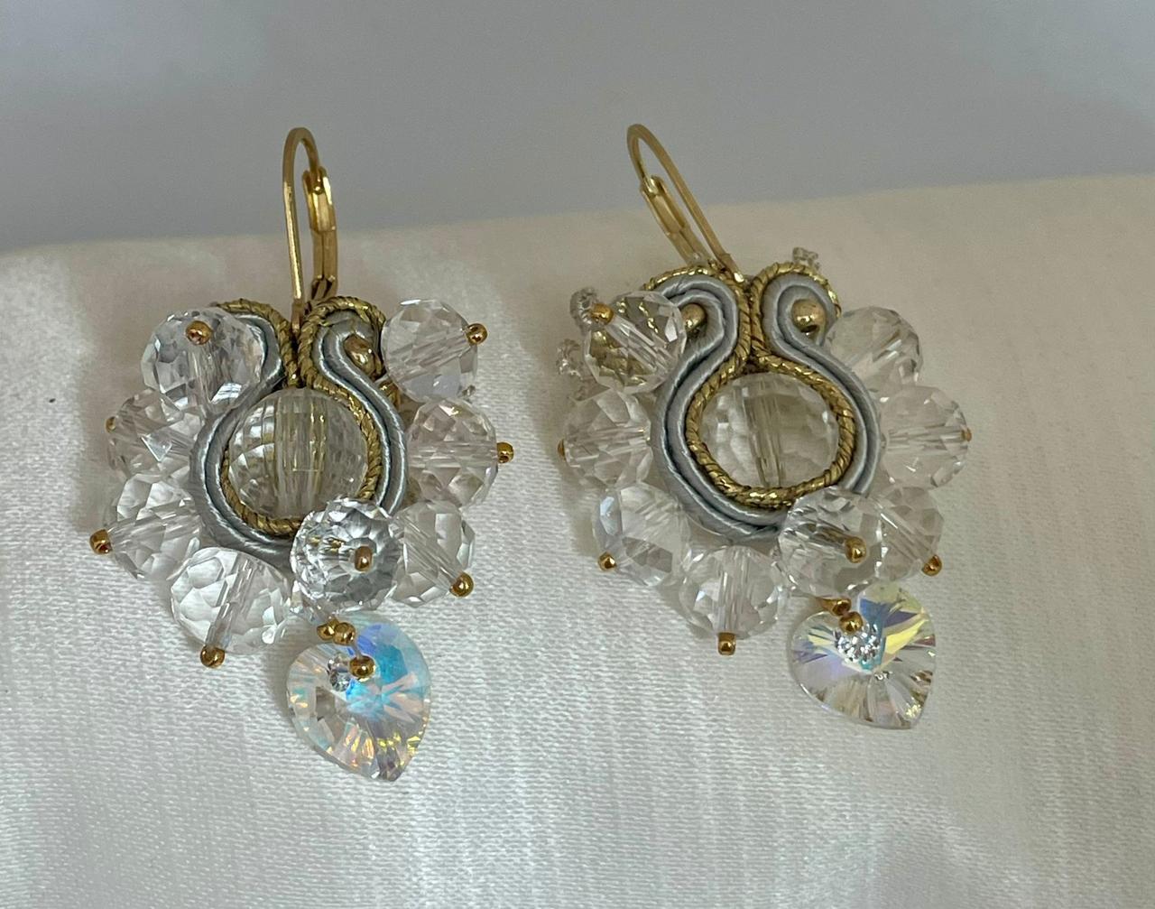 Radiant and refined, the Ice Earrings capture the brilliance of frozen light. Each earring features a cluster of faceted clear crystals, gently encircling a dual-tone metallic core with gold and silver accents. A delicate heart-shaped crystal drop adds a touch of softness, reflecting every movement with shimmering grace.