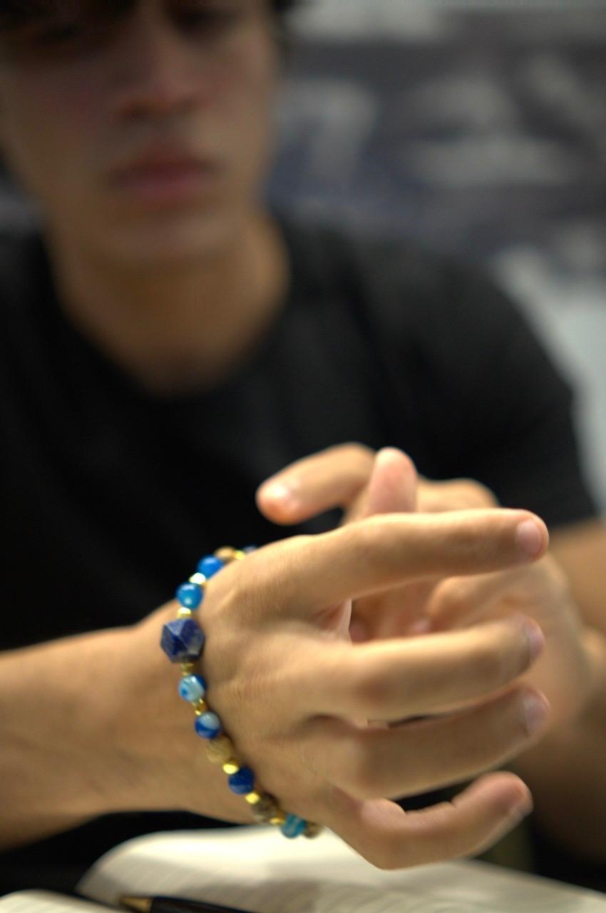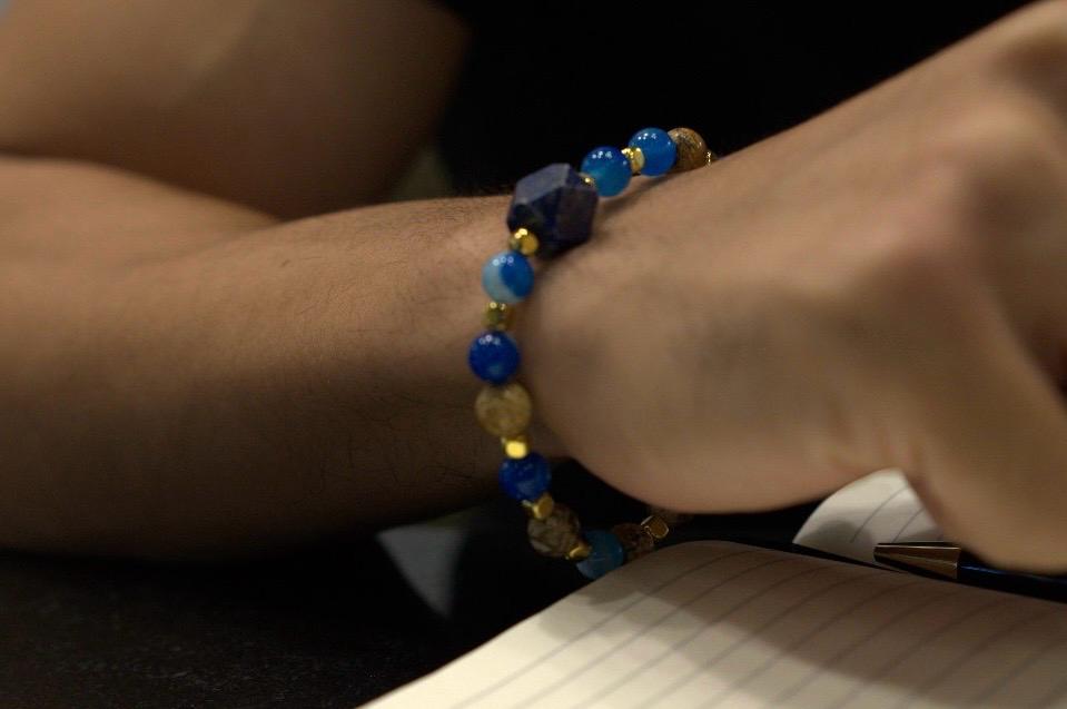 Lapis Stone, Striped Blue Agate, Paesina Stone, Gold-Plated Hematite